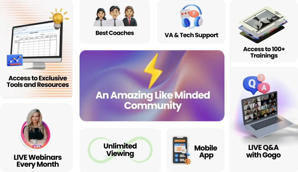 Get access to 100+ Trainings just like this and a LIVE Training w/ Gogo & other industry leaders every month.