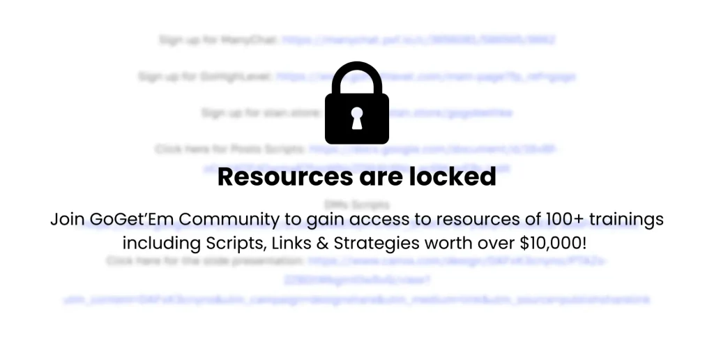 You just won a FREE pass to one of the training sessions inside the GoGet’Em Community. You know why? Because we know that once you see what’s inside, you will realize just how much you’ve been missing out.